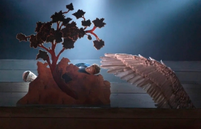 Легко подивиться можно и волшебству Царевны Лебедь: художник спектакля Марина Завьялова постаралась воплотить сказочные чудеса так, чтобы охнул не только царь Салтан. Они ждут своего часа внутри сценической конструкции, доски-лопасти которой не только помогают куклам появляться на сцене, но и превращаются в волны, а также напоминают в массовых сценах и нотный стан, и даже церковные хоры.