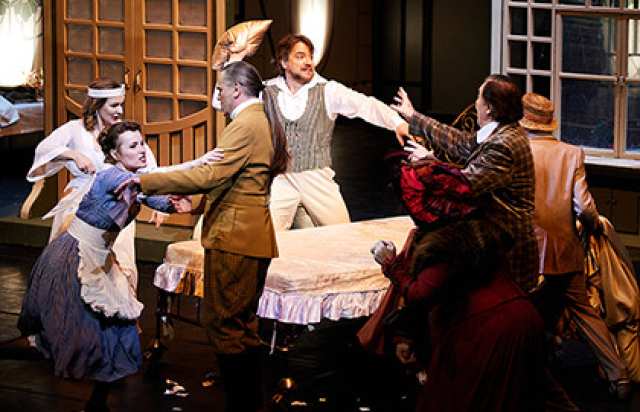 «Свадьба Фигаро» – это комедийный спектакль, веселое праздничное представление с переодеваниями и разрастающейся до хаоса путаницей; порой только желание не упустить ни одной моцартовской ноты удерживает зал от взрывов хохота. Но гений композитора придает происходящему в севильском замке безумству потаенную глубину. В первой сцене Фигаро линейкой измеряет габариты комнаты; ко всему, что зритель увидит далее, Моцарт применяет другую, невидимую шкалу. По ней оценивается высокое и низкое, и ее градации тонки и противоречивы. Результаты получаются неоднозначные: если приложить эту «линейку» к социальной иерархической лестнице, то граф окажется наверху, Фигаро – внизу, если же попробовать измерить душевные качества героев – скорее наоборот. Так же ставится вопрос о чести и честности: один готов убить за свою честь, но сам бесчестен, другой громоздит обман на обмане, но чести не теряет. При всем своем родстве с масками комедии дель арте персонажи «Свадьбы Фигаро» – живые люди, и их «показатели» на шкале высоты и низости, благородства и плебейства способны кардинально меняться, так что даже завистливая интриганка может преобразиться в заботливую мать, а распутный ловелас – в любящего мужа. Живыми – настоящими, чувствующими – героев делает моцартовская музыка.